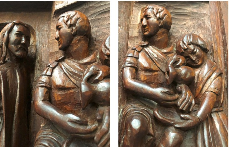 Fig. 3 (R) Detail from first station, Pilate washes his hands.